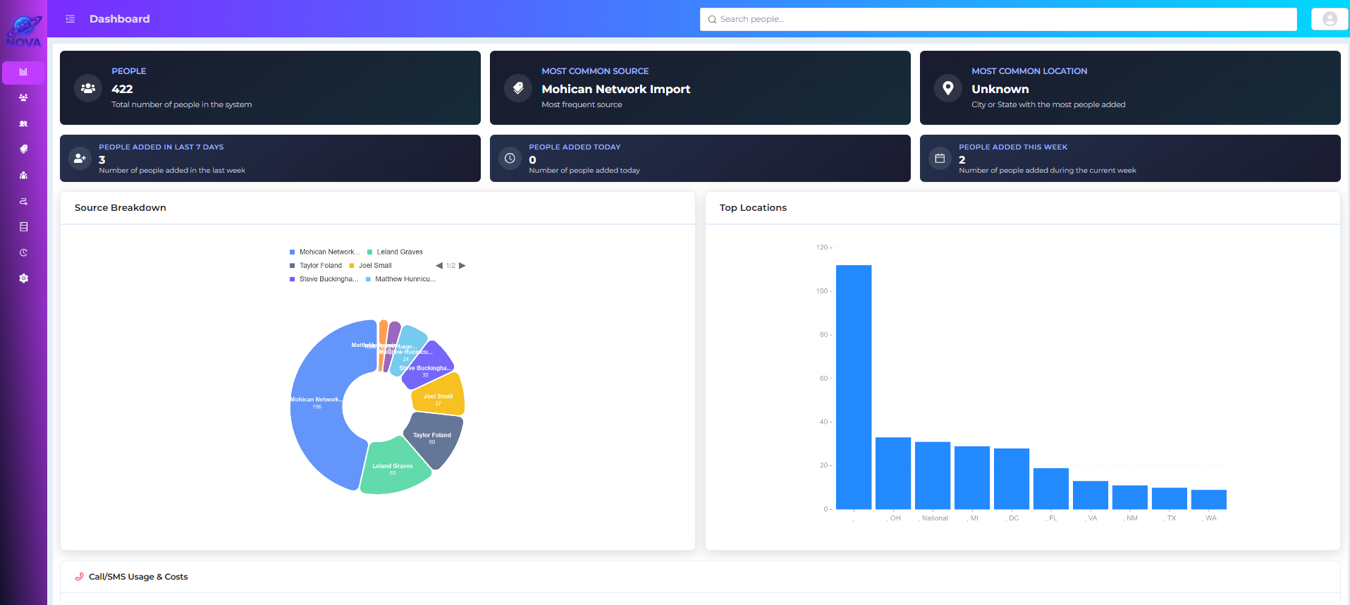 Through integrations with Mercury and Pulsar, Nova transforms your CRM into a complete communication hub. Text or call any contact directly from their profile:
