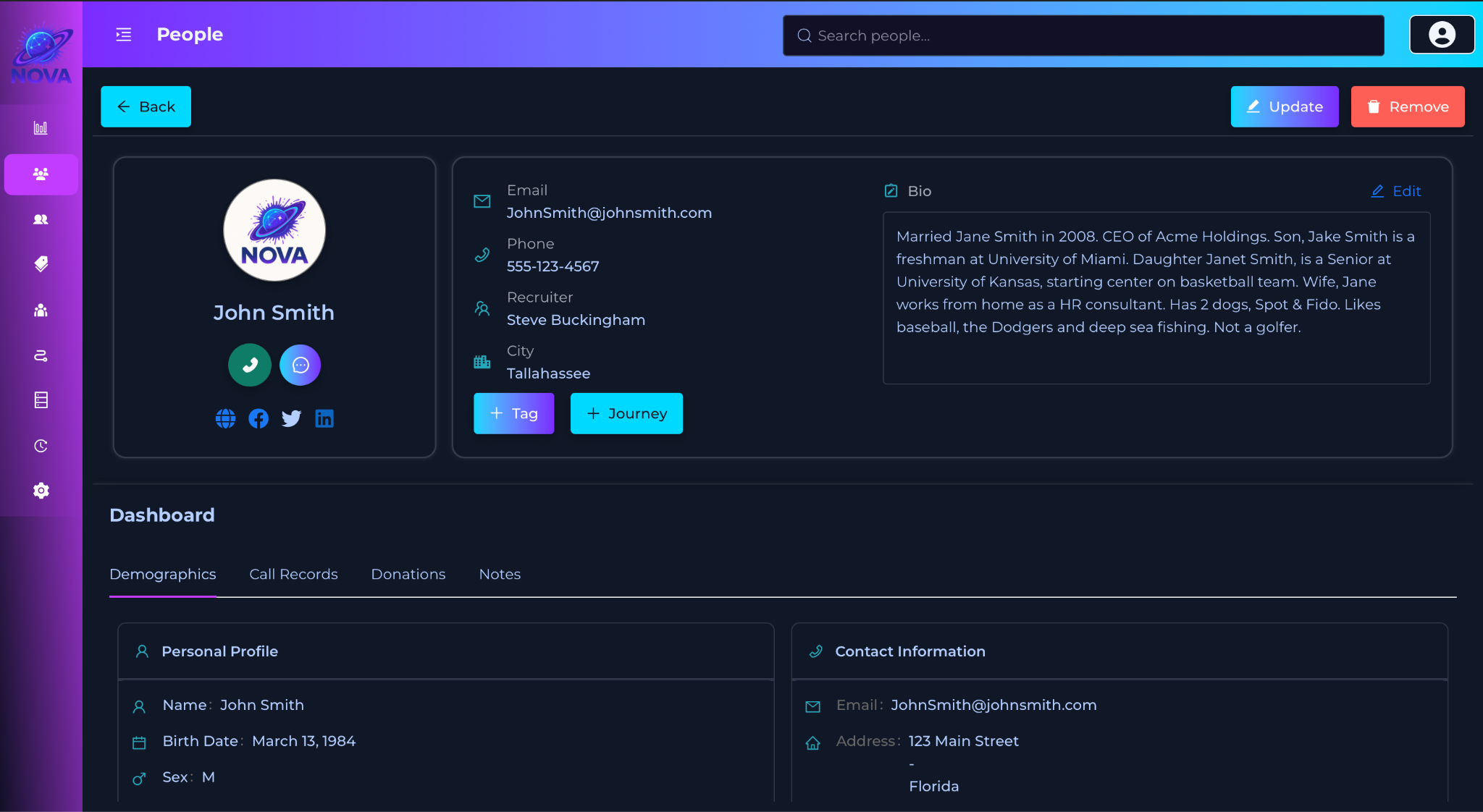 Nova’s intuitive tagging system lets you organize contacts however your organization needs.