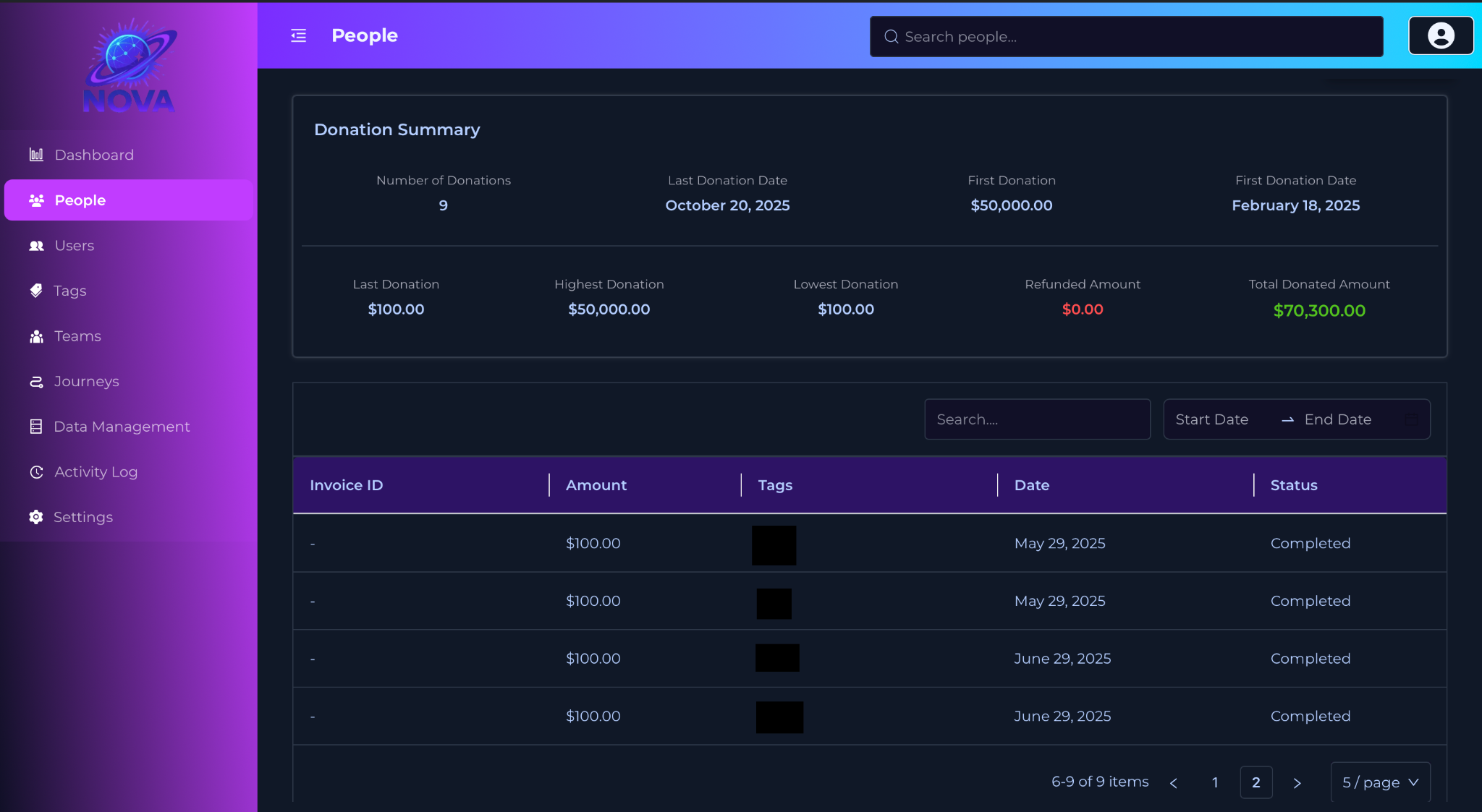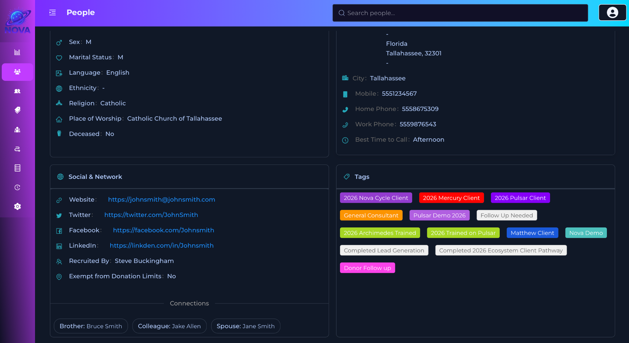 Nova pulls transaction data from Anedot in real-time, creating or updating contact profiles automatically. Tag donors based on giving levels, campaigns, or custom criteria for targeted follow-up.